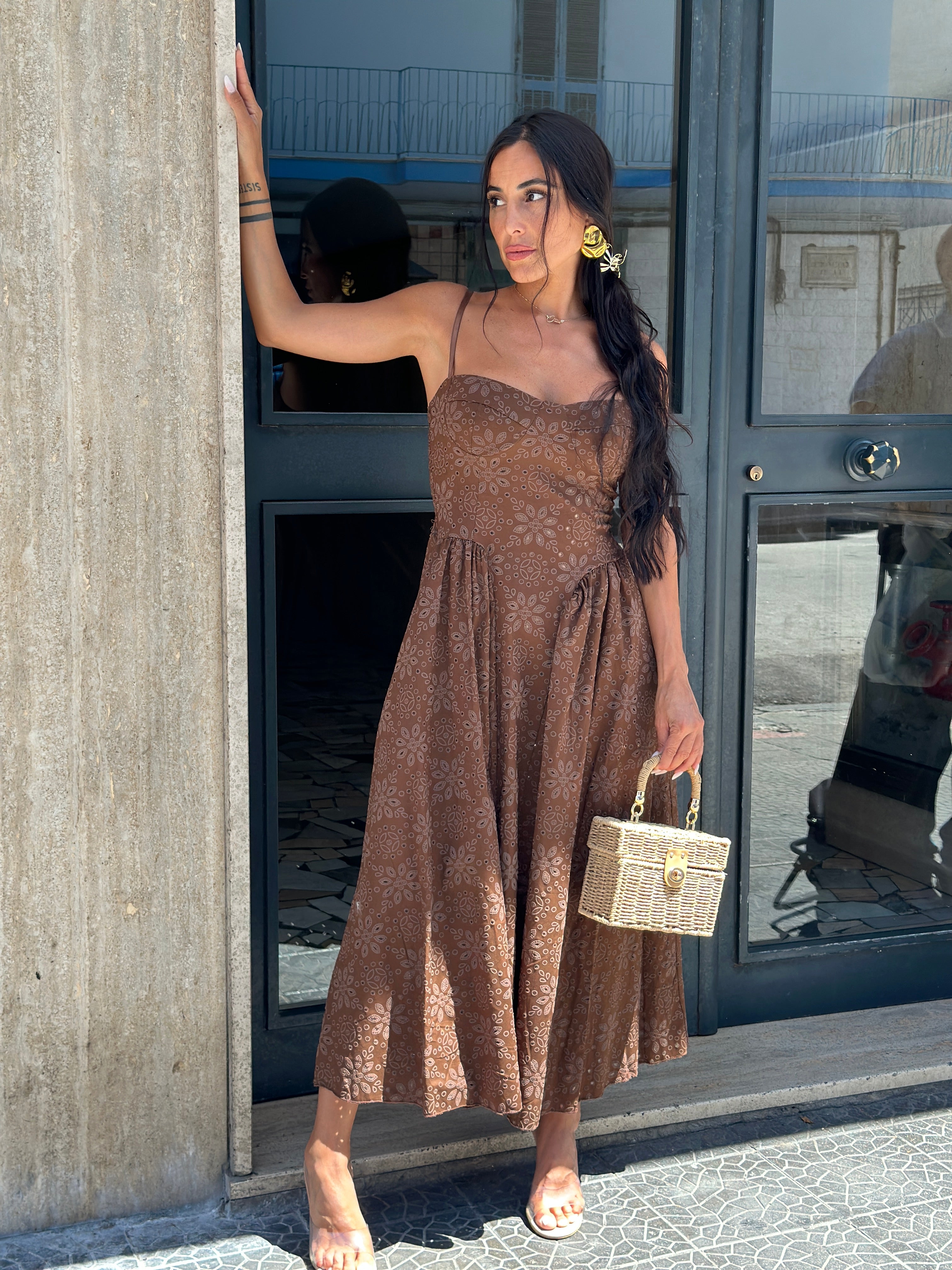 Abito in pizzo sangallo, bretelle elasticizzate regolabili, elastico sul retro. Le coppe non sono imbottite