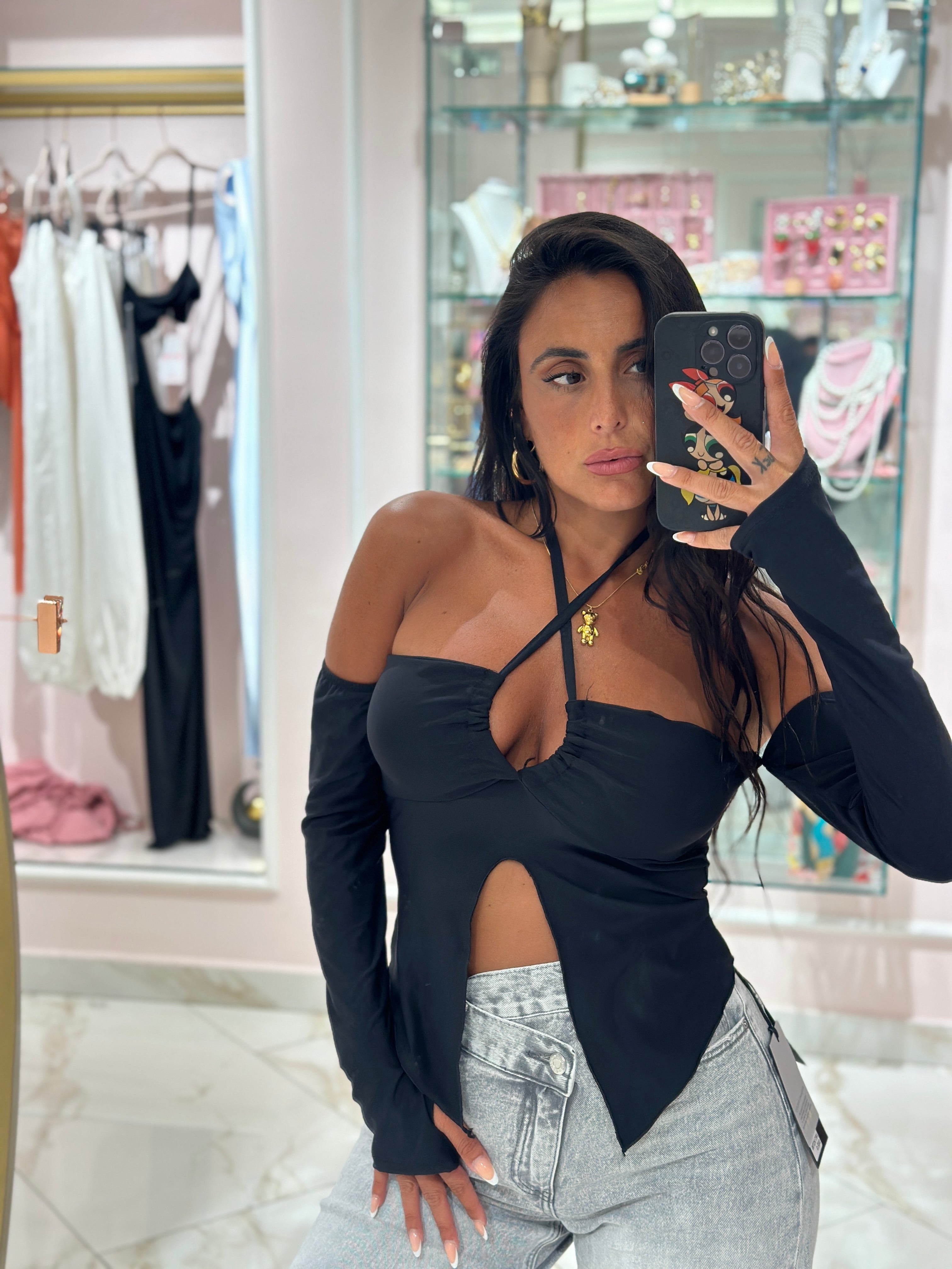 Top in licra, elasticizzato, coppe interne,manica guanto